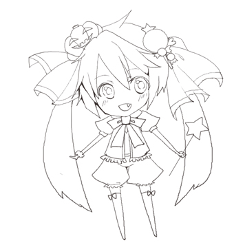 [壁]ω・`)チラッεεε゙(ノ´・ω・)ノタッタッタッεεεチラッ(´・ω[壁] ハロウィンは間に合いませんでしたwwwwwwww11月やwwwでも、一応描いたのであげておきますvvこっちは線画ー! こうやってみると、ほんと色塗りヘタですね